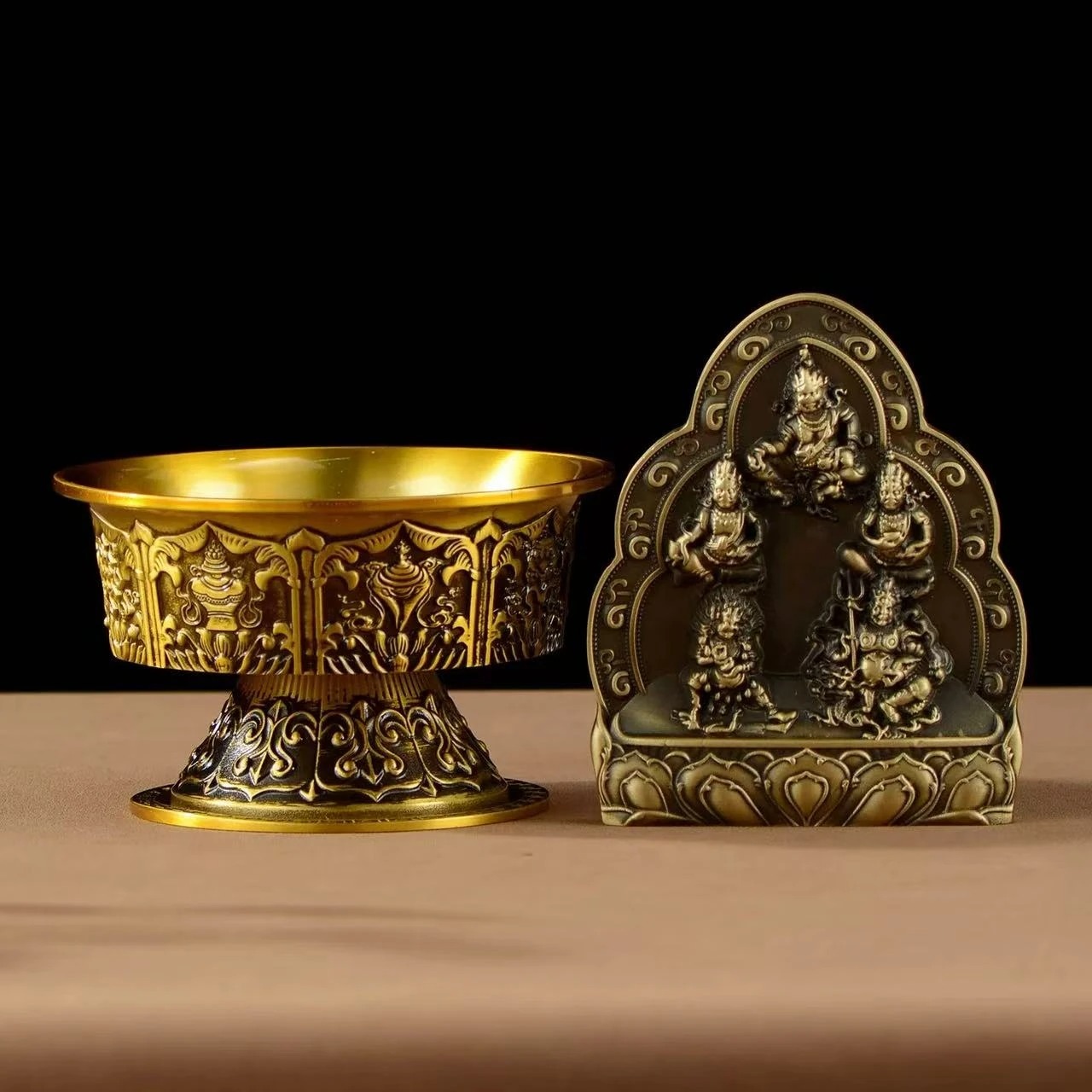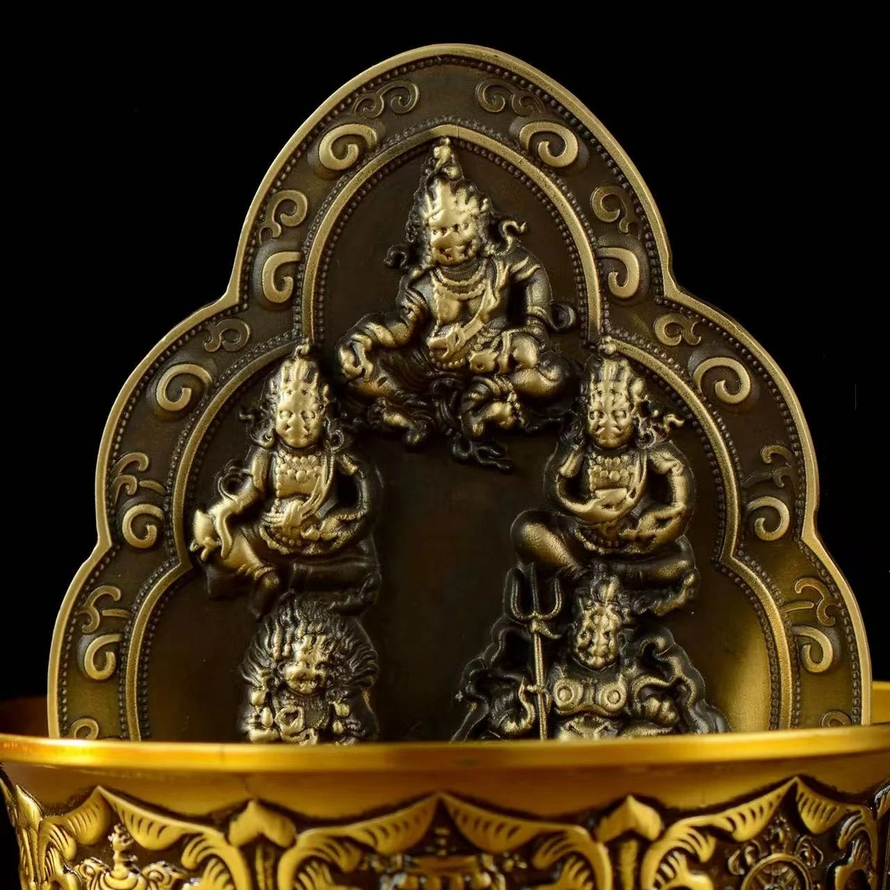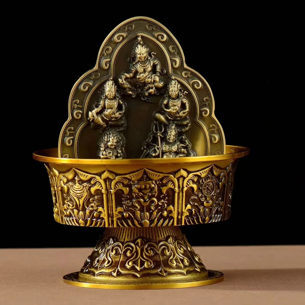 Jambhala is a deity in the Tibetan Buddhist pantheon who is believed to bring wealth and prosperity to those who honor him. He is often depicted holding a mongoose, which spits out jewels or precious objects, symbolizing abundance and good fortune. The statue of Jambhala is therefore considered a powerful symbol of wealth and prosperity in Tibetan culture.