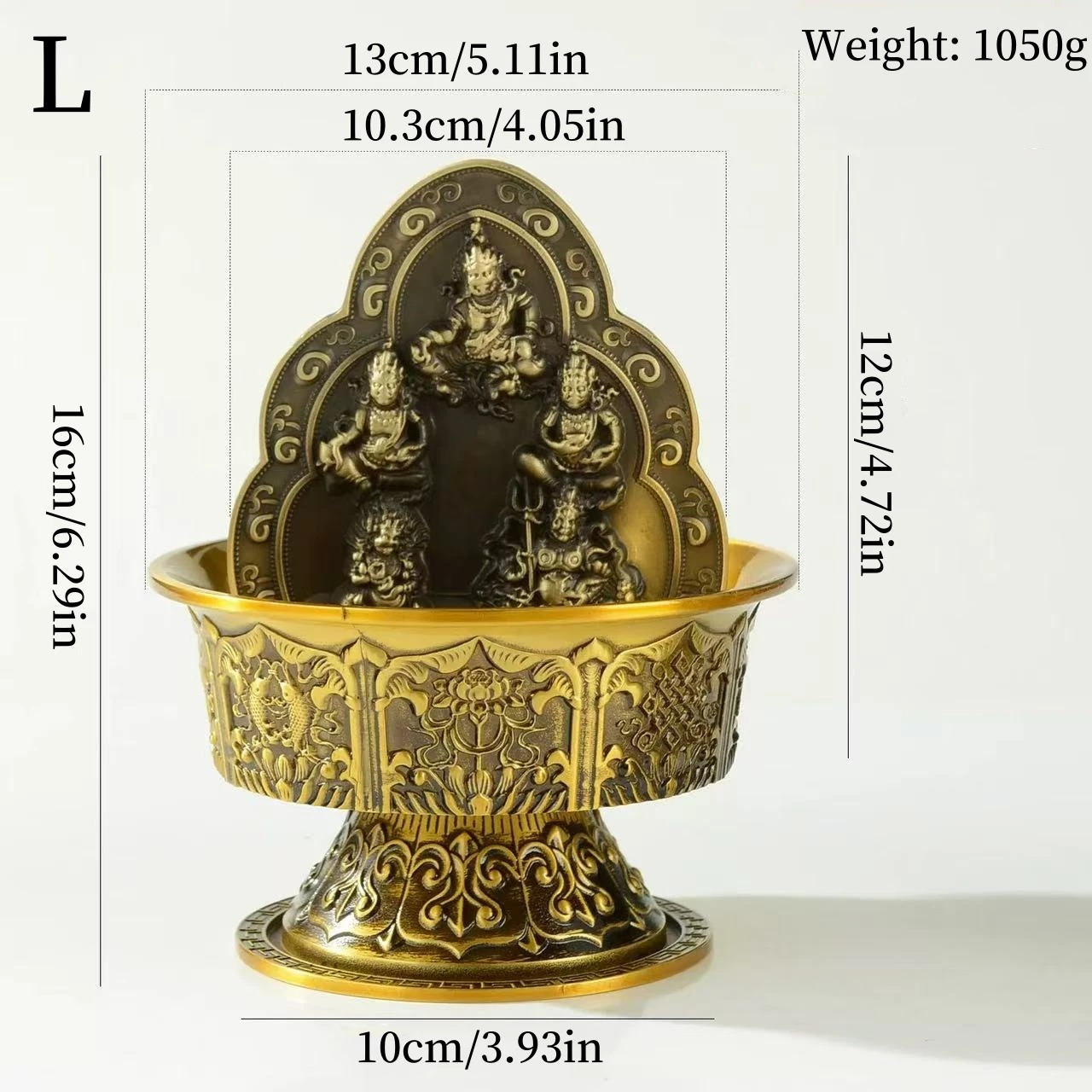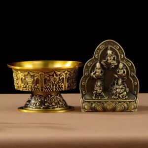 The Brass Buddhist God of Wealth Statue comes in two parts – a Buddha statue and a tray. The Buddha statue represents the God of Wealth and is seated in a meditative pose. The tray is designed to hold water, which symbolizes the use of water to moisten the wealth of Buddha and get the blessing of wealth.